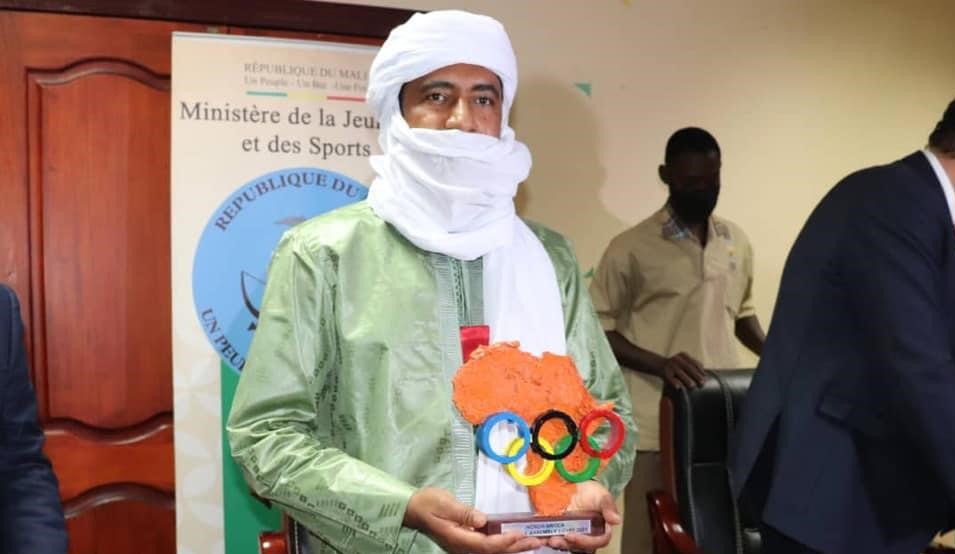 Officiellement désigné, le mardi 29 juin, comme pays hôte des prochains Jeux Africains de la Zone 2 de l’Association des Comités Nationaux Olympiques d’Afrique (ACNOA), le Mali a dans la foulée remporté sa première médaille à travers son ministre de la Jeunesse et des Sports, Mossa Ag Attaher décoré de la 𝐌é𝐝𝐚𝐢𝐥𝐥𝐞 𝐝𝐞 𝐥’𝐎𝐫𝐝𝐫𝐞 𝐝𝐮 𝐌é𝐫𝐢𝐭𝐞 𝐝𝐮 𝐒𝐩𝐨𝐫𝐭 𝐀𝐟𝐫𝐢𝐜𝐚𝐢𝐧 par le président de l’ACNOA.