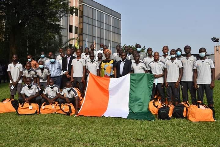 Avant de s’envoler pour le Maroc, le Sélectionneur de la Côte d'Ivoire Dao Lacina et ses poulains ont reçu le drapeau national et des équipements, hier lundi 01 mars 2021 dans le jardin de la FIF.