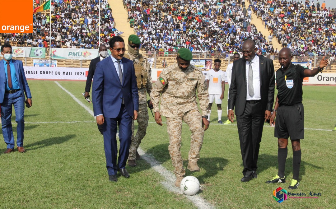 Le dimanche 27 juin 2021, le président de la Transition, le Colonel Assimi Goita a présidé la finale de la 60e édition de la coupe du Mali de football. Arrivé dans l’enceinte du stade Modibo Keita aux environs de 16h10, le président Goita est accueilli par le président du CNT (Conseil National de la Transition), Malick Diaw, le ministre de la Jeunesse et des Sports, chargé de l’Institution Civique et de la Construction Citoyenne (Mossa Ag Attaher) ainsi que le président de la Femafoot (Mamoutou Touré Bavieux) et son bureau.