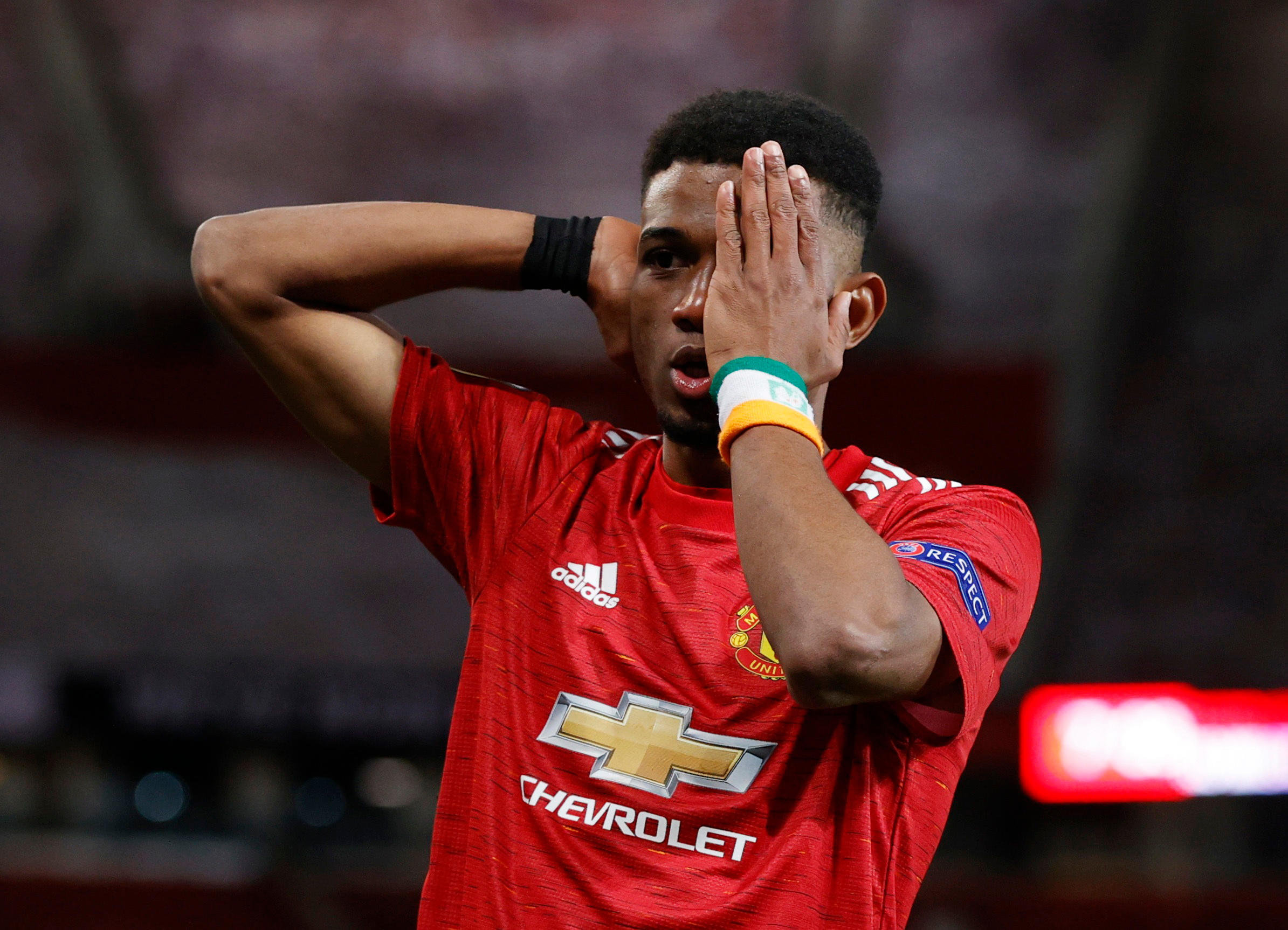 Une main posée sur l’œil gauche et l’autre sur l’oreille droite. C’est avec ce geste qu’Amad Diallo a célébré son premier but sous les couleurs de Manchester United (l’Equipe A) face au Milan AC, en 8es de finale aller de la Ligue Europa (1-1).
