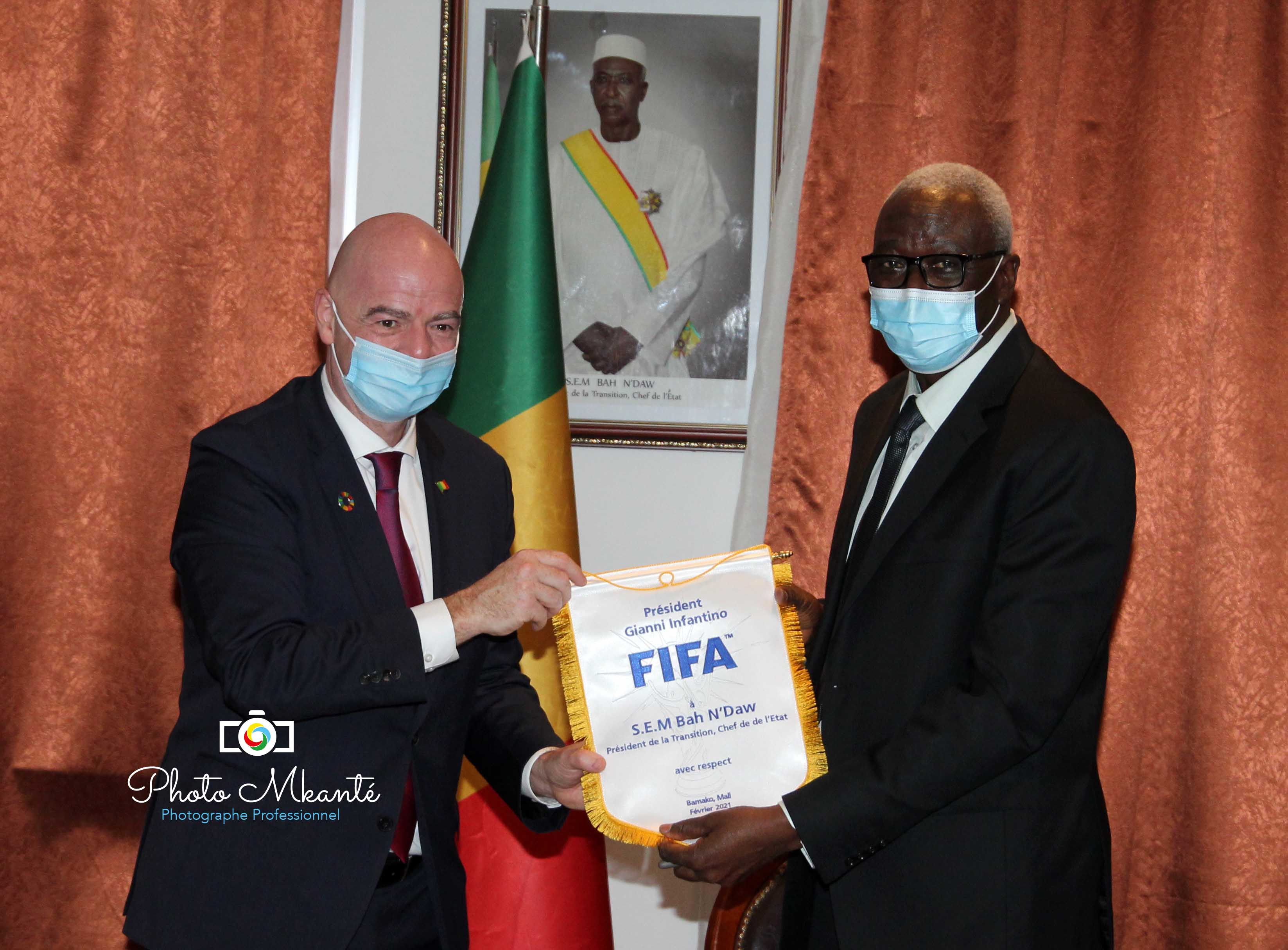 Dans le cadre de sa visite d’amitié et de travail au Mali, le président de la FIFA, Giani INFANTINO a été reçu par le Président de la Transition, Chef de l’Etat, son Excellence Bah N’DAW.