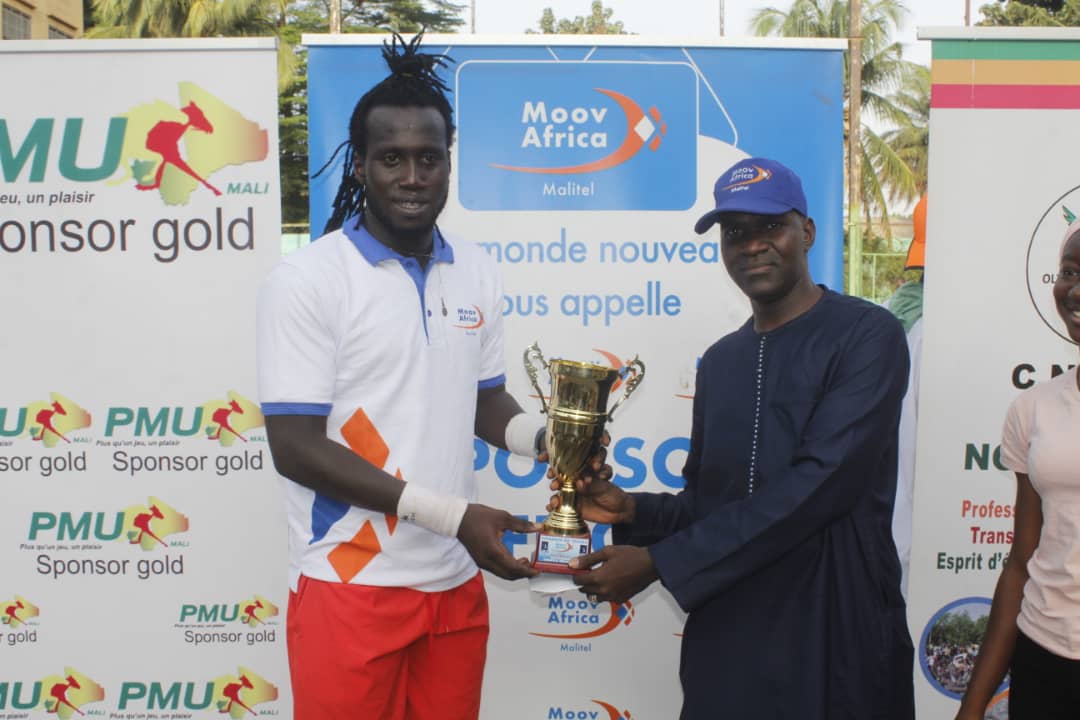 La première édition du Tournoi Open de Tennis Moov Africa Malitel a rendu son verdict le jeudi 10 juin 2021 au Tennis Club de Bamako à la faveur de la finale des Simples Messieurs. Au terme d’un match maitrisé, le quadruple champion du Mali en titre, Seydou Diallo s’est adjugé le trophée en dominant son dauphin Abdoulaye Bagayoko par 2 sets à 0 (6/2 et 6/0). Aux côtés du secrétaire général de la fédération malienne de Tennis Amadou Dicko, on notait également la présence remarquée du représentant du Comité National Olympique et Sportif du Mali Abdoul Wahab Zoromé, du représentant de Moov Africa Malitel Cheick Hamed Tidiane Kane.