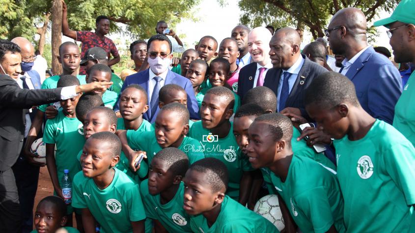 Après la pose de la première pierre du nouveau Centre Technique de la Femafoot, le président Gianni Infantino n’a pas manqué de faire honneur aux jeunes footballeurs (7-8 ans) de l’Afrique Foot Elite (AFE) à travers une photo de famille.