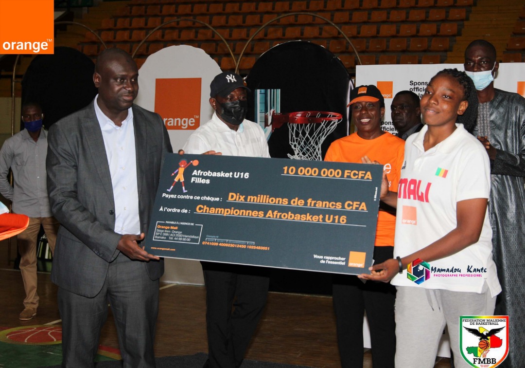 C’est à la faveur d’une cérémonie au palais des sports Salamatou Maiga que le sponsor officiel de la Fédération Malienne de Basketball, Orange-Mali, a primé les champions d’Afrique U18 garçons, U16 filles et les vice-champions d’Afrique U18 Filles, U16 Garçons et les U19 filles, demifinalistes du mondial 2021. Les chèques varient entre 10 et 5 millions CFA pour un montant global de 35 millions CFA.