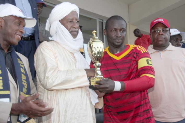 Le capitaine Moussa Sissoko et ses coéquipiers remportent du coup le trophée de la première édition de la coupe AJSM interservices devant une vaillante équipe de PMU-Mali.