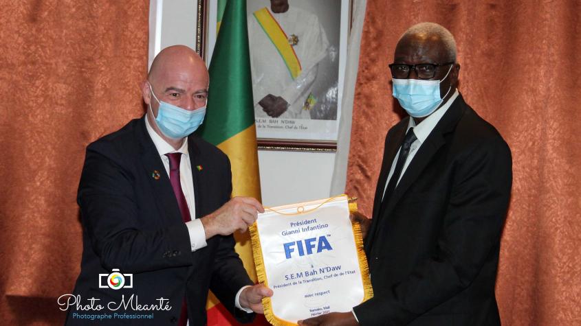 Dans le cadre de sa visite d’amitié et de travail au Mali, le président de la FIFA, Giani INFANTINO a été reçu par le Président de la Transition, Chef de l’Etat, son Excellence Bah N’DAW.
