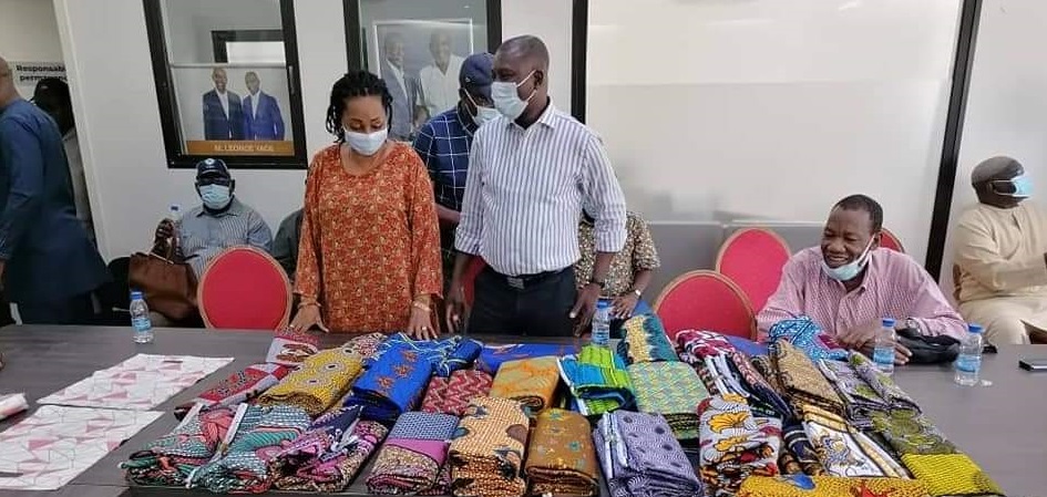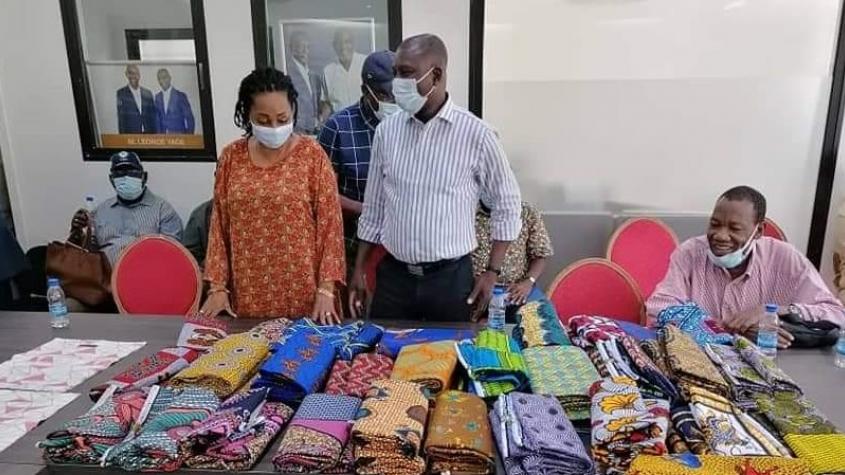 Après un échange fructueux avec la quarantaine de présidents de clubs et de groupements d'intérêt, le candidat à l'élection à la présidence de la FIF, Sory Diabaté, et les membres de son staff de campagne ont offert un pagne wax à chacun des participants à la réunion de reprise de leurs activités.